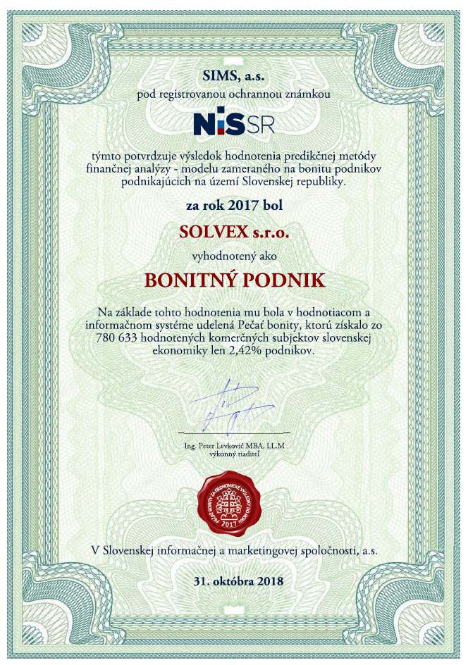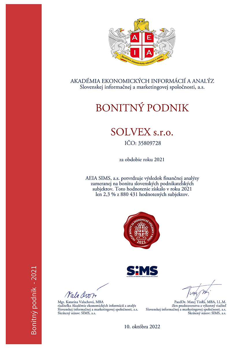 Cestovná kancelária SOLVEX získala prestížne ocenenie – Pečať Bonity. Pečať Bonity udeľuje Národné informačné stredisko Slovenskej republiky a Slovenská informačná a marketingová spoločnosť na zaklade hodnotiacieho systému, ktorým sa zhodnotila bonita komerčných subjektov, ktoré podnikajú na území Slovenskej republiky.