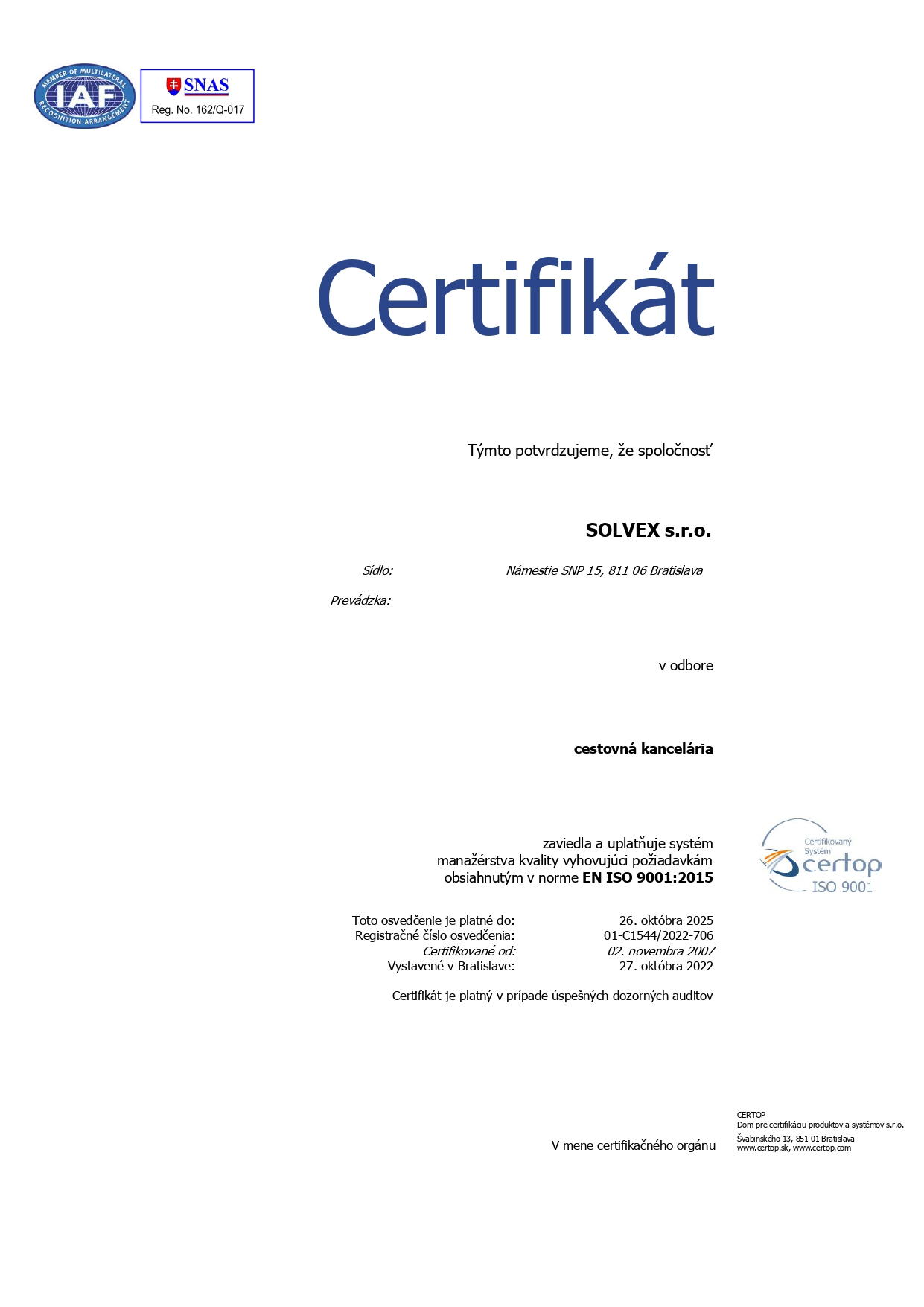 Zmluvu môžete vidieť v prípade ak používate - online systém CK Solvex pre rezervácie,